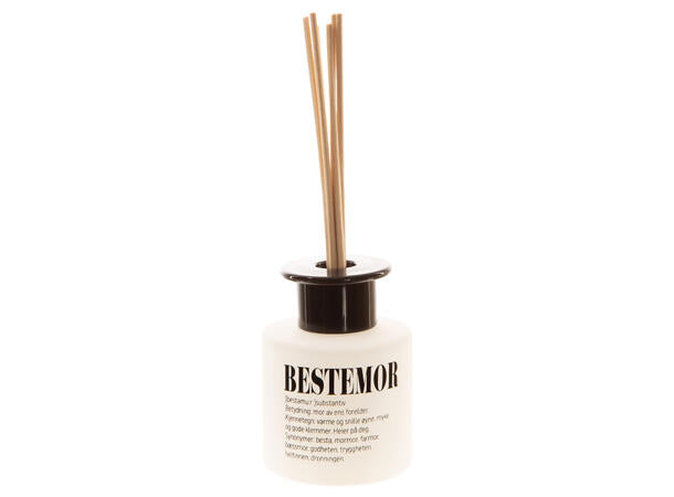 Duftolje matt hvit glass 7x7cm Bestemor 100ml m/6 pinner 15 % duft lotus