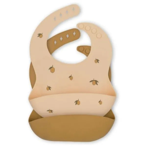 Konges Sløjd silikonsmekke er laget av 100% silikon og er perfekt for alle måltider. Lommen foran på smekken samler opp matbiter og søl som bommer på munnen. Smekken er lett å tørke av og kan også vaskes i oppvaskmaskinen. Den er justerbar i nakken med to trykknapper.